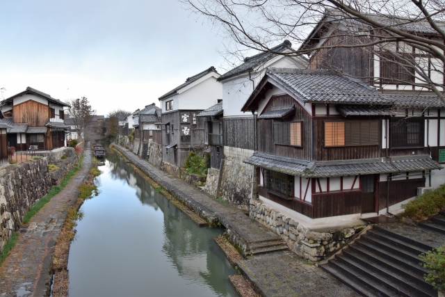 白壁の町家が並ぶ八幡堀を、のんびりおさんぽ。